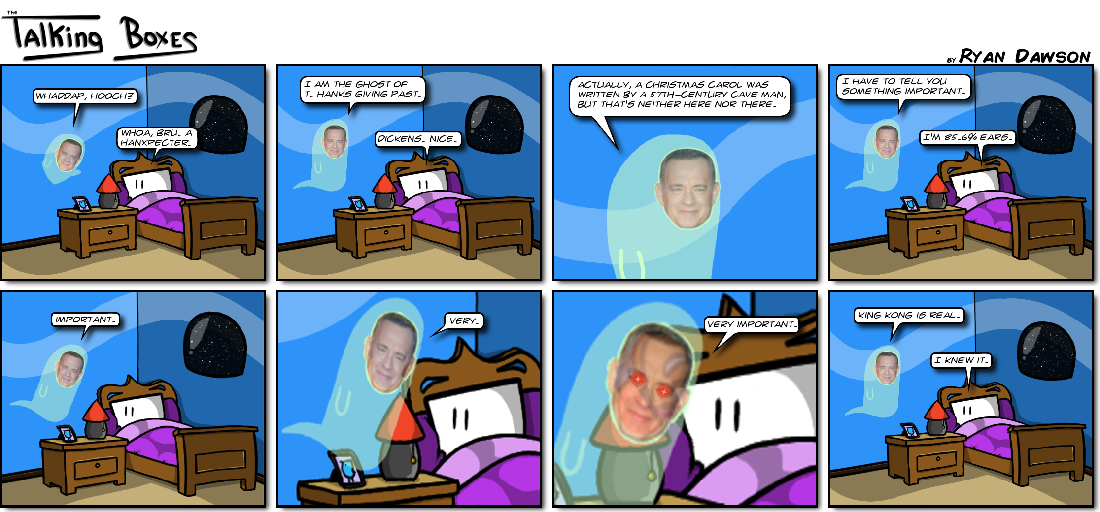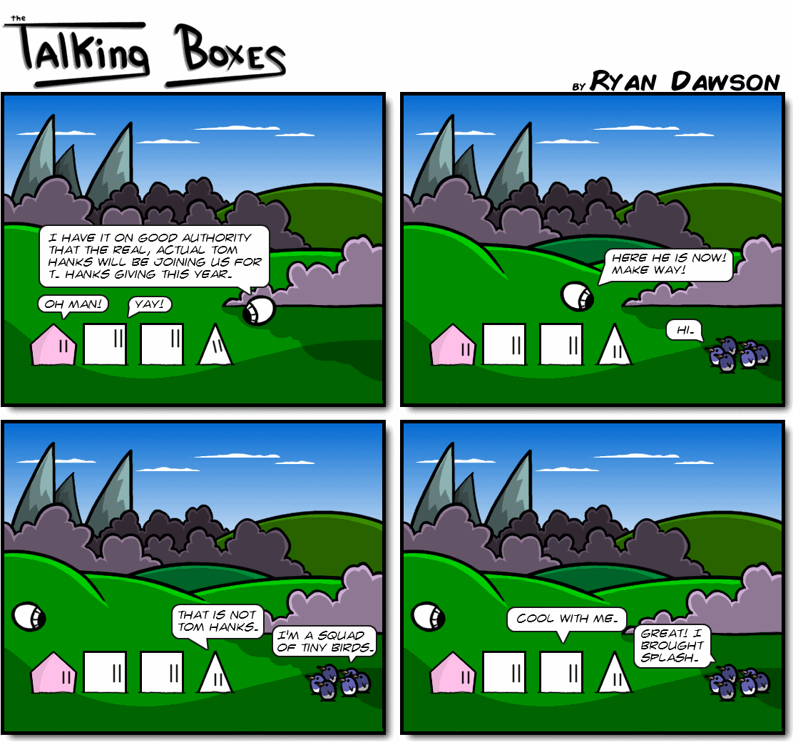So they mentioned “Tom Hanksgiving” on The Big Bang Theory. You may remember that we did a holiday strip about T. Hanksgiving last month. I’m counting this as a name drop.